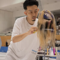 この課題は、モードスタイルを制作するものである。ヘアスタイル制作にあたって技術性を重視し、作品に独自の創造性、ファッション性が表現されるものとする。