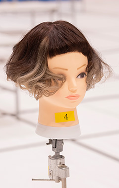 ⑤モデルウイッグの髪は、事前にスタイリングされていてはならない。(形付けのための整髪料、カーラー、ピン類がついていてはならない。)