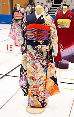 ②中振袖(色は自由とする)※全国大会の場合は「着物の色は、黒またはそれに近い色は禁止」とされている。